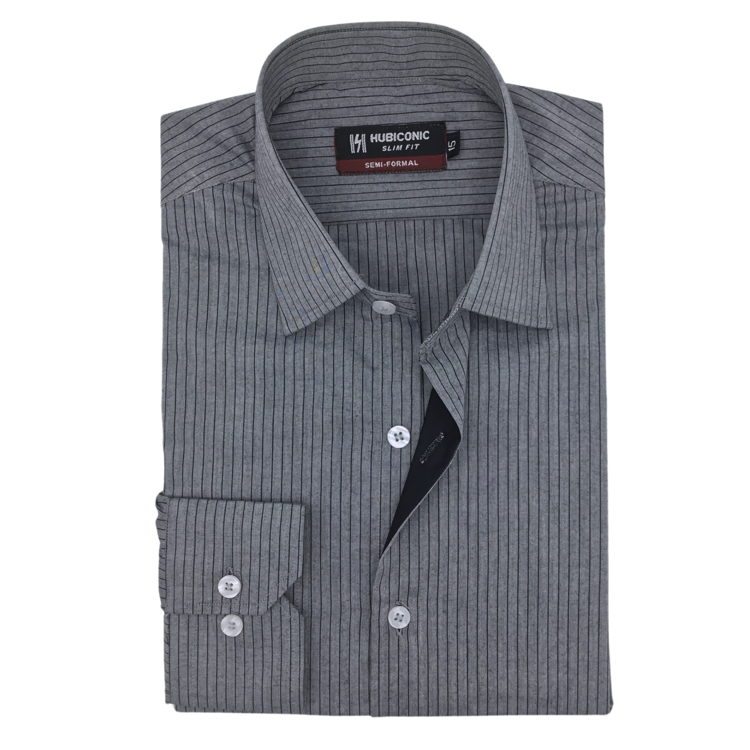 Step into quiet sophistication with the Charcoal Whisper Dress Shirt. This refined grey piece is adorned with delicate black stripes, creating a look that’s both understated and memorable. The black detail inside the buttonhole strip adds a layer of elegance, perfect for the discerning individual who values subtlety in style.