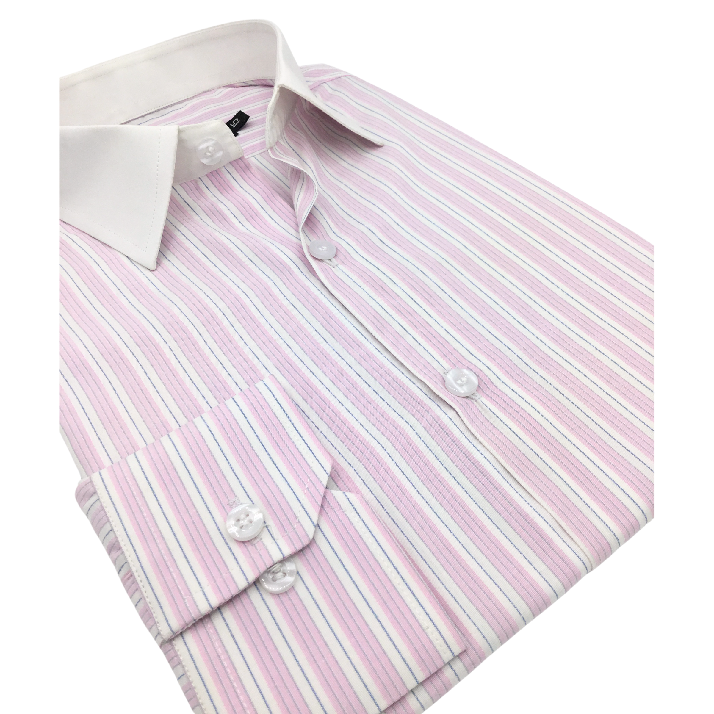 Step into effortless sophistication with The Urban Accent Dress Shirt. Featuring refined pink and white stripes, complemented by a slender blackish-blue line, this shirt strikes a perfect balance of classic and contemporary. The crisp white collar adds a touch of distinction, making this shirt an ideal choice for the modern professional who values style with subtle flair.
